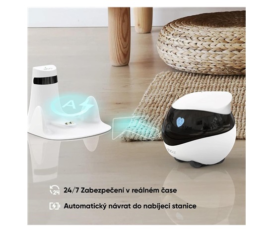 Kvalitní 1080p kamera se širokým úhlem záběru 118° zachytí každý detail, zatímco vysokokapacitní baterie 2450 mAh zajišťuje dlouhou výdrž a automatické dobíjení pomocí dokovací stanice. Díky detekci pohybu a neobvyklých zvuků vás EBO SE okamžitě upozorní na jakoukoli aktivitu v domácnosti. Jeho mobilita a plánované trasy hlídkování umožňují sledovat více místností – mnohem efektivněji než u běžné IP kamery. Elegantní design a stabilní připojení zaručují bezproblémový provoz i na větší vzdálenost.