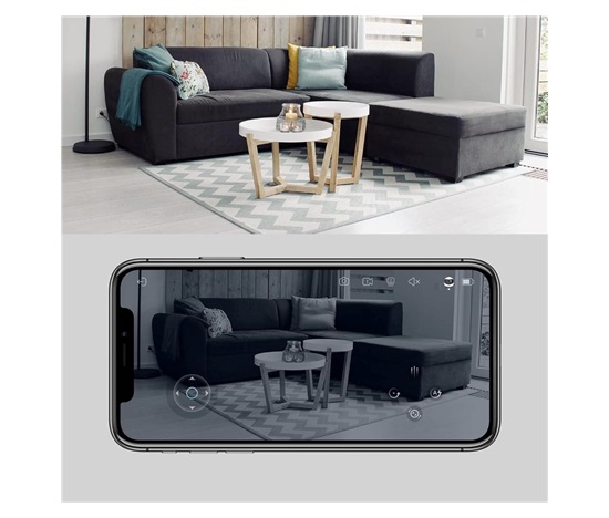 Kamera s Full HD rozlišením 1080p a širokým úhlem záběru 118° zajišťuje ostrý obraz plný detailů. Umožňuje sledovat dění ve více místnostech na rozdíl od statických IP kamer. Poskytuje tak kompletní přehled o celém domě. Obraz je stabilní, plynulý a ideální jak pro dohled, tak pro zábavu.