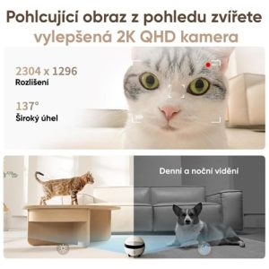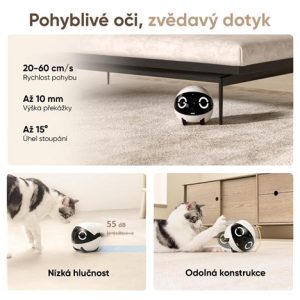 • Dálkové ovládání přes aplikaci – ovládejte robota odkudkoli a sledujte, co váš mazlíček právě dělá.