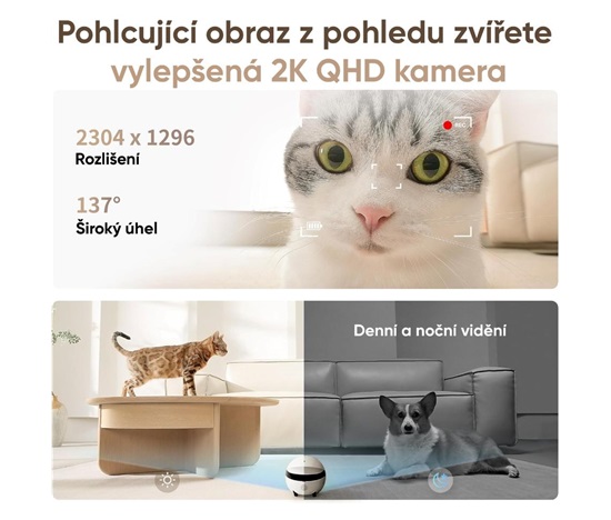 • Všestranné využití – skvělý pro zábavu domácích mazlíčků, komunikaci s dětmi i jako mobilní domácí kamera.