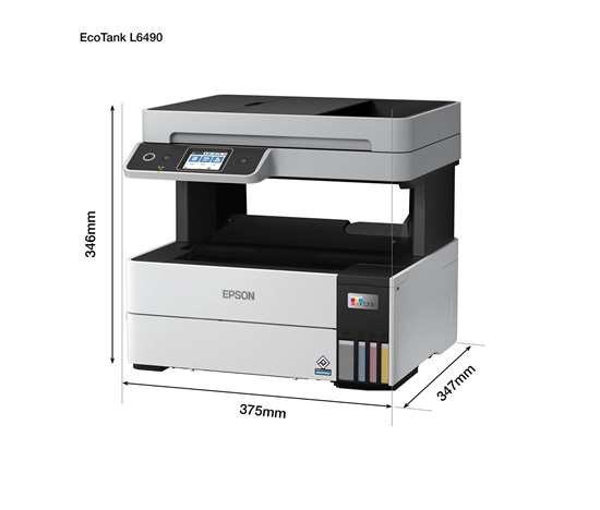 Tisková technologie:Inkoustový tankový systém; Skutečné rozlišení tiskárny (v DPI):1200×4800; Rozhraní tiskárny:USB, Síťové, Wi-Fi; Maximální formát tisku/média:A4; Maximální rychlost tisku (A4 za minutu):37; Automatický oboustranný tisk (Duplex); Funkce:Barevný tisk, Bezokrajový tisk, Oddělené náplně, Fax