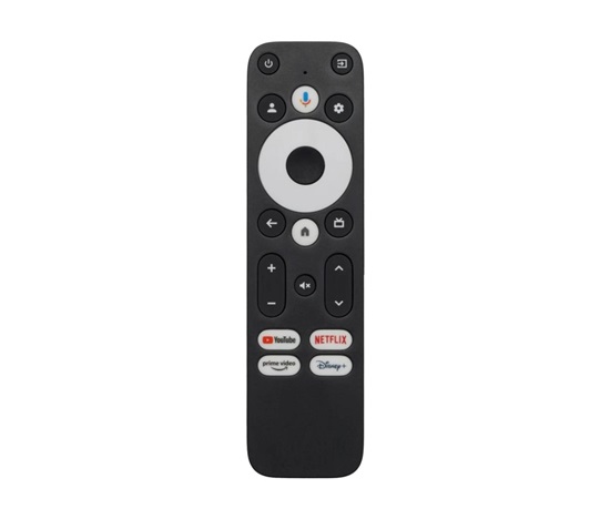 - Hlasové ovládání přes Google Assistant – v dálkovém ovladači je zabudovaný mikrofon pro rychlé vyhledávání a ovládání hlasem