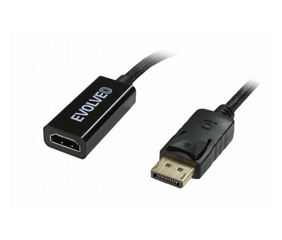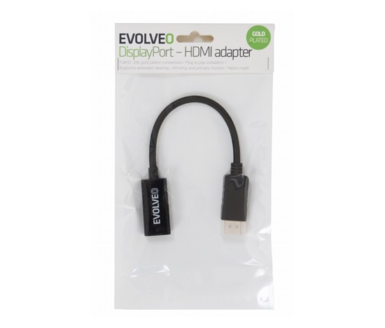 Evolveo adaptér, pomocí kterého je možné převádět Full HD video z konektoru DisplayPort do HDMI. Kabel je potažen prémiovým nylonovým opletem, který zajišťuje vysokou odolnost i při intenzivním užívání a ohýbání.