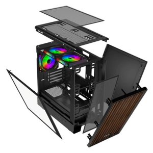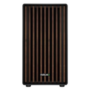 EVOLVEO Panthera, skříň mATX, 3x ARGB ventilátor 120mm, dřevěný přední panel + skleněná bočnice