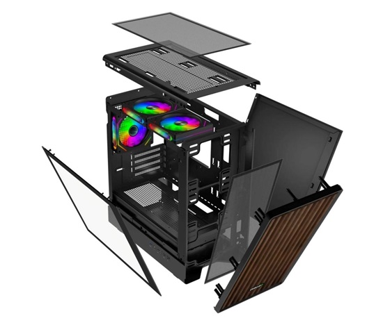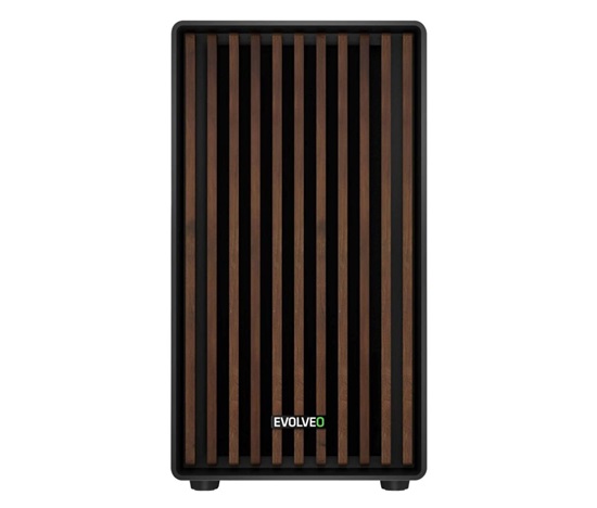 EVOLVEO Panthera, skříň mATX, 3x ARGB ventilátor 120mm, dřevěný přední panel + skleněná bočnice