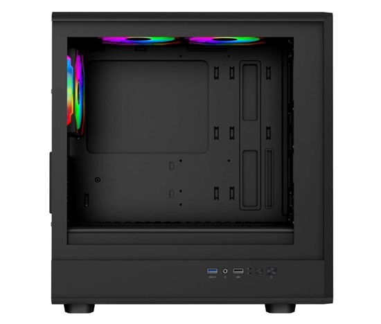 Provedení skříně:Mini Tower / micro ATX; Barva skříně:Černá; Počet pozic 3.5″ (HDD):2; Počet pozic 2.5″ (SSD):1; Bočnice:Prosklená; Podsvícení:ARGB; Vybavení PC skříně:Průhledná bočnice