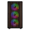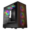 Provedení skříně:Mini Tower / micro ATX; Barva skříně:Černá; Počet pozic 3.5″ (HDD):2; Počet pozic 2.5″ (SSD):1; Bočnice:Prosklená; Podsvícení:ARGB; Vybavení PC skříně:Průhledná bočnice