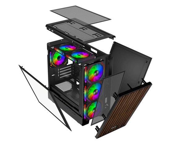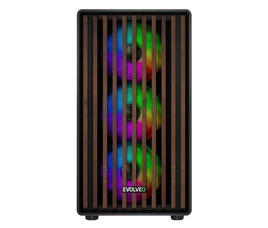 EVOLVEO Panthera, skříň mATX, 6x ARGB ventilátor 120mm, dřevěný přední panel + skleněná bočnice