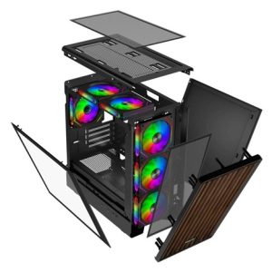 EVOLVEO Panthera-BK-6, to není žádná nudná krabice na součástky, ale špičková PC skříň, která si zasluhuje pozornost. Do světa vyspělých videoherních technologií totiž přináší vytříbenou eleganci, a dokonce i trochu přírody – je osazena dřevěným čelním panelem, září působivým zrcadlovým podsvícením a bočnici má z temperovaného skla, takže přednosti vašeho počítače neskrývá, ale naopak hrdě vystavuje na odiv.