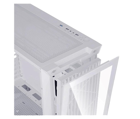 Hned na první pohled vás tato PC skříň zaujme stylovým průhledným provedením. Čelní panel i bočnice jsou vyrobeny z temperovaného skla, takže při pohledu na počítač můžete obdivovat světelnou show RGB ventilátorů nebo se na vlastní oči přesvědčit, že hardware šlape jak švýcarské hodinky. Použité bezpečnostní sklo o síle 4 mm má navíc i další výhodu – kdyby nedejbože došlo k nehodě, nezasype vás ostrými střepy, ale rozpadne se na neškodné drobné kousky.