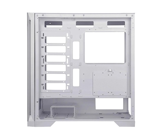 Vnitřní prostor této herní počítačové skříně je navržen tak velkoryse, že může být základem i pro ty nejambicióznější počítačové sestavy. Chladič procesoru může měřit až 164 mm na výšku. Grafická karta se sem vejde v délce až 390 mm. A pro ukládání dat je k dispozici místo pro 2 klasické pevné disky (3,5″) a 3 moderní rychlá SSD úložiště (2,5″). Každá hardwarová součástka je zkrátka v této digitální pevnosti vítaným hostem a dostane se jí péče jako na císařském dvoře. Roli přitom nehraje ani její urozený původ – do skříně se dají vložit základní desky Intel i AMD, přičemž jsou podporovány formáty ATX, eATX (Extended ATX), mATX (Micro ATX) i mITX (mini ITX).