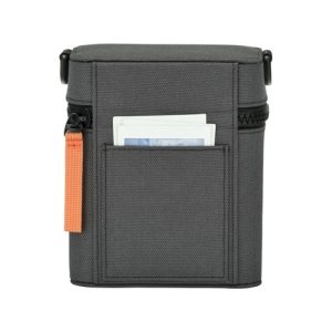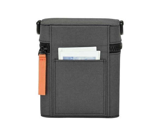 Fujifilm při návrhu věnoval pozornost každému detailu – černo-šedé barevné provedení doplňuje výrazné oranžové poutko zipu, které ladí s akcenty přímo na těle fotoaparátu. Výsledkem je harmonický, promyšlený celek, který působí moderně a jednotně.