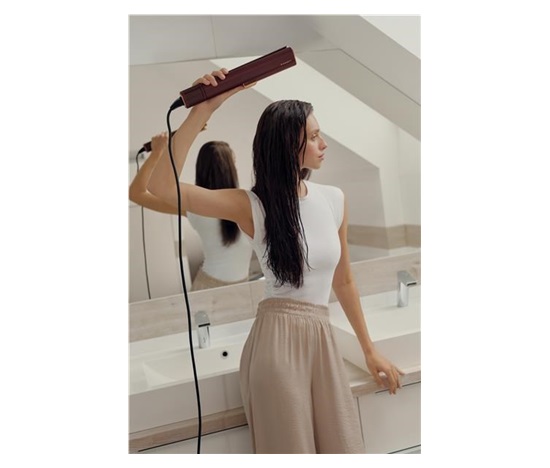 S AeroGlow žehličkou na vlasy můžete narovnávat vlasy téměř ihned po umytí – stačí jen lehce vysušit kořínky. Jemný proud vzduchu je současně suší a narovnává, takže ranní rutina je kratší a vlasová struktura zůstává chráněná. Je to pohodlí, které je vidět i cítit – méně poškození, více přirozeného lesku. Každý den.