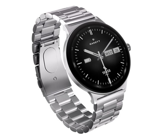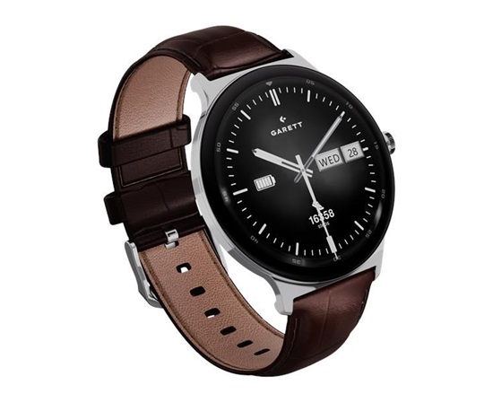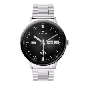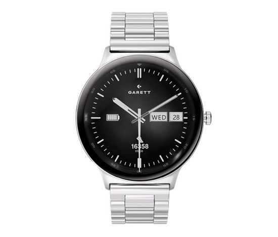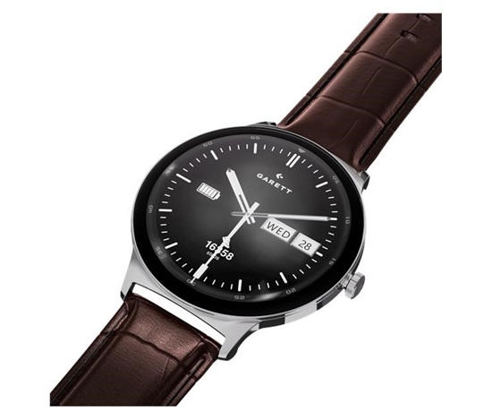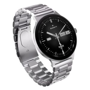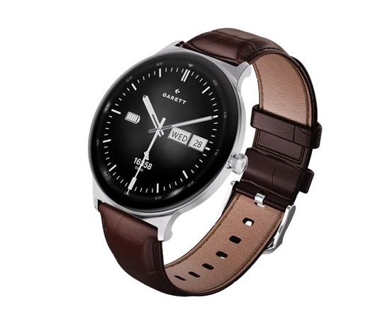 Elegantní chytré hodinky s 1,43” AMOLED displejem (466 × 466 px), ochranou Gorilla Glass a ultratenkým pouzdrem o tloušťce 7,5 mm. Nabízejí Bluetooth hovory, monitoring zdraví (tep, krevní tlak, SpO2, stres), sledování spánku a více než 100 sportovních režimů. Výdrž až 7 dní na jedno nabití, voděodolnost IP68, kompatibilita s Android a iOS (Garett Smart). Součástí balení je ocelový i kožený řemínek.