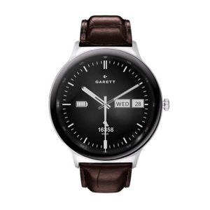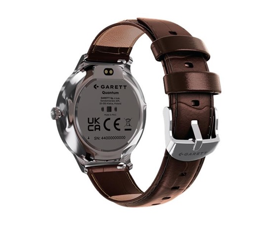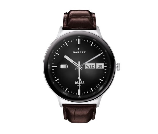 • Sada obsahuje: smartwatch GARETT, náhradní kožený řemínek (černý / hnědý dle varianty), nabíjecí základna USB, QSG návod