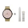 Balení obsahuje dva řemínky: kovový (milánský nebo ocelový podle zvolené varianty) a bílý řemínek z ekologické kůže. Díky snadné výměně lze styl hodinek přizpůsobit dennímu i večernímu nošení – elegance a praktičnost v jednom.