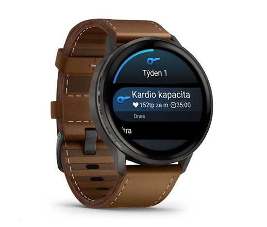 Garmin Venu 4 (45 mm) Slate / Černý silikonový řemínek a Hnědý kožený řemínek, EU (upravit kartu)