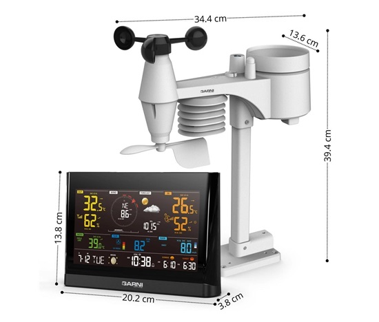Wi-Fi meteorologická stanice model GARNI 1025 Arcus 2GEN s integrovaným bezdrátovým čidlem 7-v-1, která je vybavena mnoha funkcemi shromažďuje přesné a podrobné údaje o počasí. Integrované bezdrátové čidlo pracuje na frekvenci 868 MHz a měří vnější teplotu a relativní vlhkost, rychlost a směr větru, dešťové srážky, barometrický tlak, UV index a intenzitu slunečního záření. Výrobek používá vysoce přesná švýcarská čidla SENSIRION a umožňuje kalibraci některých meteorologických veličin.