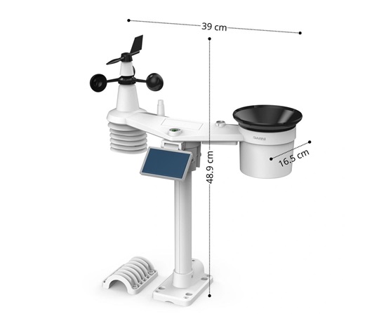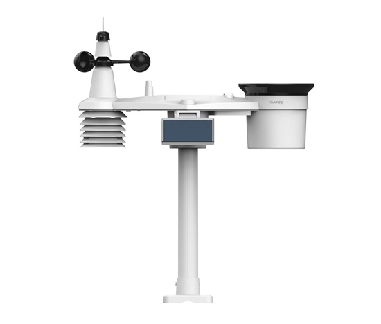 Integrované bezdrátové čidlo 7-v-1 GARNI 1NG měří vnější teplotu a relativní vlhkost, rychlost a směr větru, dešťové srážky, UV index a sluneční záření, a data jsou odesílána do hlavní jednotky až do vzdálenosti 150 m (v otevřeném prostoru).