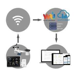 – přenos dat naměřených integrovaným čidlem 7-v-1 na server webové služby Weather Underground a Weathercloud