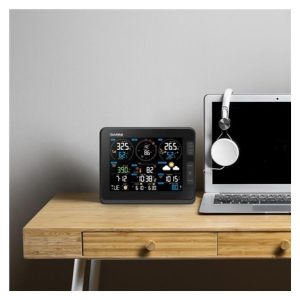 Hlavní jednotka má snadno čitelný inverzní barevný VA displej, který zobrazuje předpověď počasí, vnitřní a venkovní