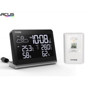 Meteorologická stanice s budíkem a měřením vnitřní a vnější teploty a relativní vlhkosti a předpovědí počasí s barevným inverzním V.A. displejem s ultra černým pozadím s možností volby nastavení zobrazení až z 256 barev. Displej má velké úhly pozorování, vysoký kontrast a ostrost
