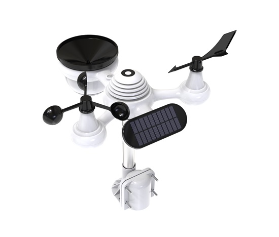 • barva bílá, úchyt montážní tyče, solární panel, nálevka srážkoměru, korouhvička a větrník černá