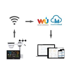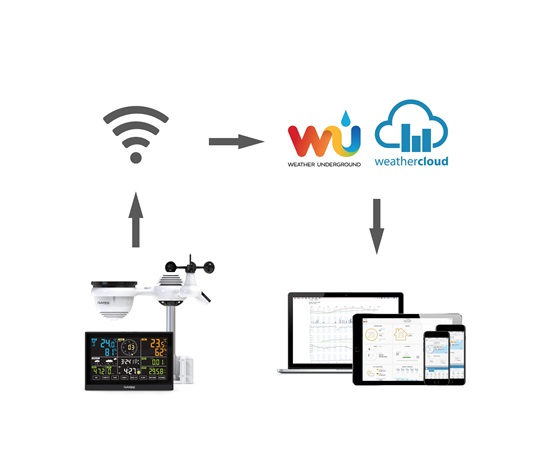 • přenos dat naměřených integrovaným čidlem 7-v-1 na server webové služby Weather Underground a Weathercloud