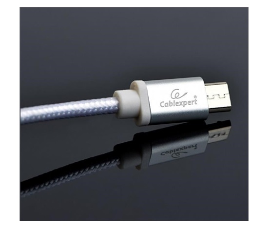 GEMBIRD Kabel MicroUSB – USB, opletený, stříbrný, 180cm