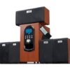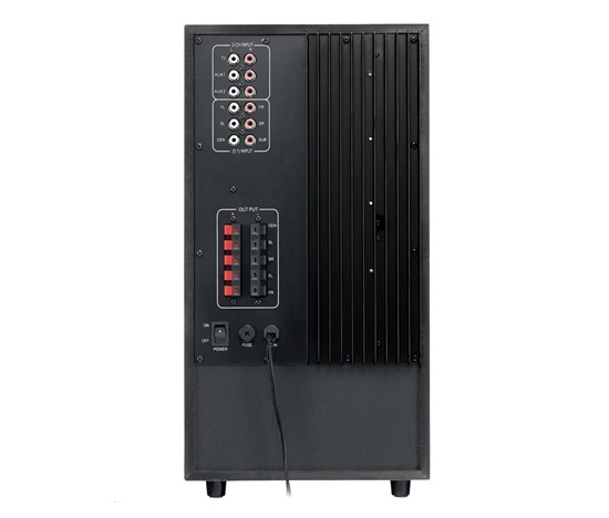 Systém reproduktorů v konfiguraci 5.1 nabízí celkový výkon 200 W. Sestava v dřevěném provedení je tvořena kvalitním subwooferem s 8″ reproduktorem, který disponuje integrovaným zesilovačem a výkonem 75 W. Subwoofer je doplněn čtyřmi satelity a jedním středovým reproduktorem s výkonem 4 x 24 W + 1 x 30 W. Součástí balení je napájecí adaptér 100-240 V a dálkové ovládání.