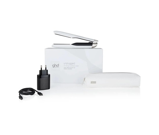 GHD Unplugged žehlička na vlasy, bezdrátová, USB-C, automatické vypnutí, bílá