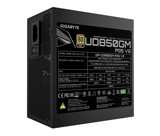 Úvod IT Komponenty Zdroje GIGABYTE zdroj UD850GM PG5 V2 850W, 120mm, Plně modulární, 80 Plus Gold, ATX 3.1