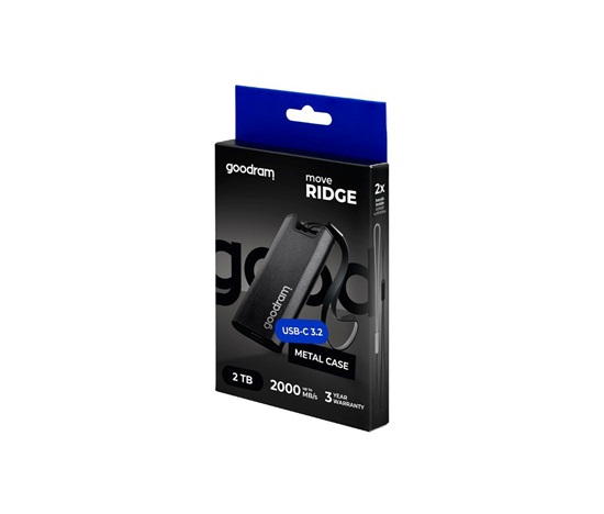 GOODRAM externí SSD Move Ridge 2TB, USB-C 3.2 Gen2x2, (R:2000/W:2000MB/s), černá