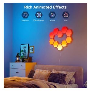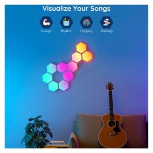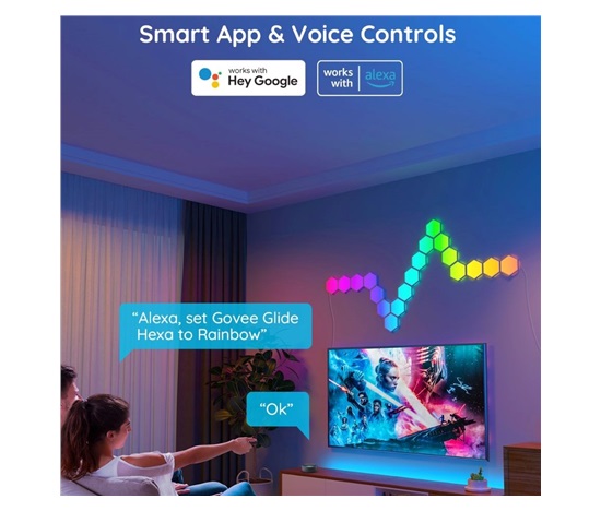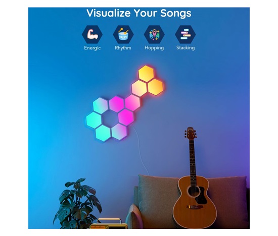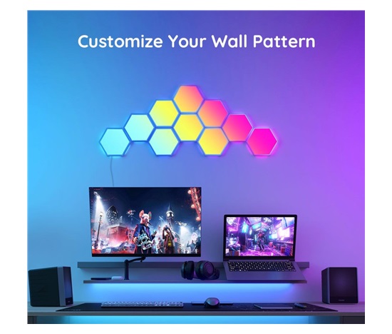 Vylepšete interiér a herní, filmové a hudební zážitky s designovým světlem Hexa Smart LED. Díky technologii RGBIC zobrazuje až 57 barev najednou. Barevnost si můžete nastavit po jednotlivých sekcích a kreativně si pohrát. Celkově umí zobrazit až 16 milionů barev s intenzitou 1-100%. Určitě si vyberete z mnoha režimů osvětlení a při poslouchaní oblíbené hudby si můžete zvolit také ze 6 rytmických režimů. Světla se ovládají hlasem přes Siri, Amazon Alexa nebo Google Assistant nebo přes aplikaci Govee Home na chytrém telefonu nebo tabletu. Světlo je určeno na instalaci na zeď a jeho tvar si můžete přizpůsobit podle vlastní fantazie. Jednoduchá instalace bez vrtání s životností až 50.000 hodin.