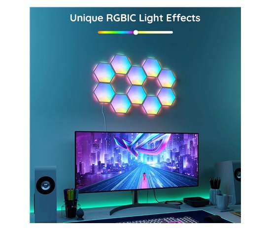 Díky vzájemné komunikaci panelů je možné s pomocí aplikace vytvořit nádherné, dynamické efekty. Technologie RGBIC pomáhá k ještě vyššímu jasu a kontrastu a vy si tak můžete vychutnat futuristické osvětlení svého herního doupěte nebo, ložnice nebo obývacího pokoje.