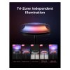 Spodní LED zóna poskytuje jasné a kvalitní bílé světlo až 1000 lumenů, vhodné pro čtení, práci nebo každodenní aktivity. Díky kombinaci teplého a studeného světla můžete přesně nastavit tón osvětlení podle nálady. Tento výkon zajišťuje, že lampa je zároveň praktická i stylová.
