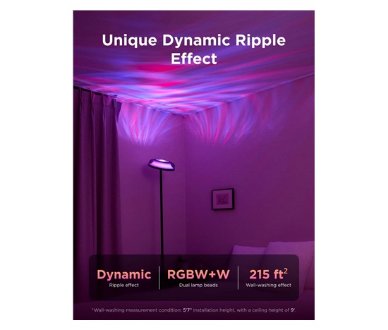 Horní část lampy je vybavena vlnkovým projekčním efektem, který proměňuje stěny a stropy v pohyblivé světelné vzory. Efekt je dynamický a plynulý, takže každý večer působí jako mini světelná show. Ideální pro relaxaci, večírky nebo jednoduše pro wow efekt v každém pokoji.