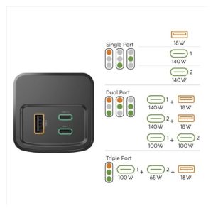 – možnost současného nabíjení 3 zařízení ze 2 USB-C zásuvek a 1 USB-A zásuvky