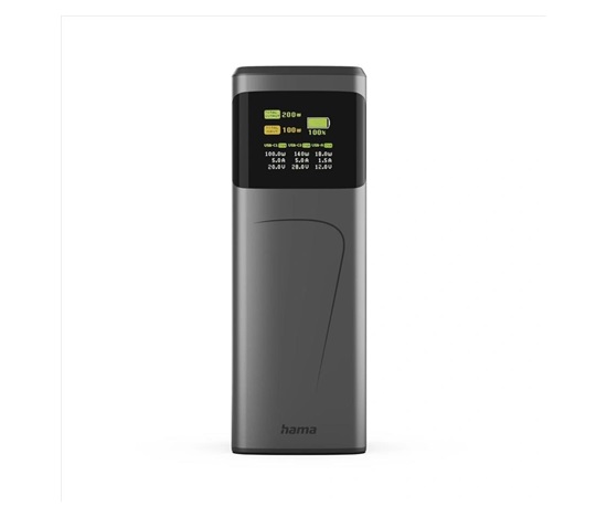 Hama High Power 200 W, powerbanka, 24000 mAh, 2x USB-C, 1x USB-A, PD, QC, displej