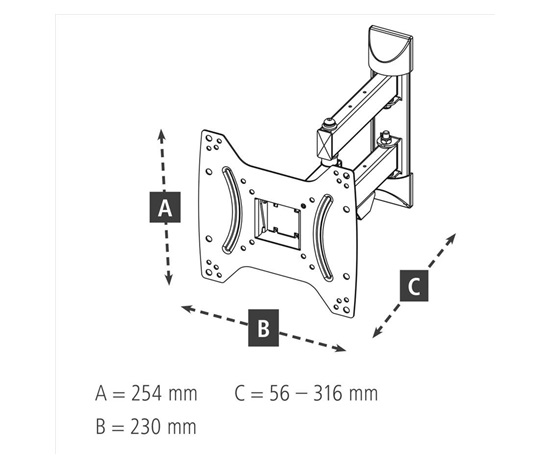 - pohyblivý držiak pre LCD obrazovky s uhlopriečkou cca. 19 až 48 palcov (48 až 122 cm)
