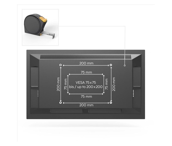 – podpora VESA (rozteč závitov): 75×75 až 200×200