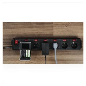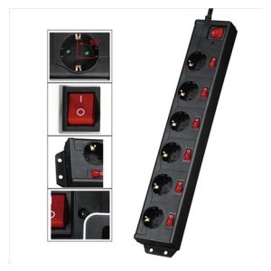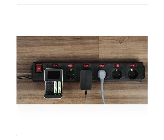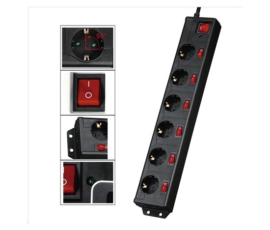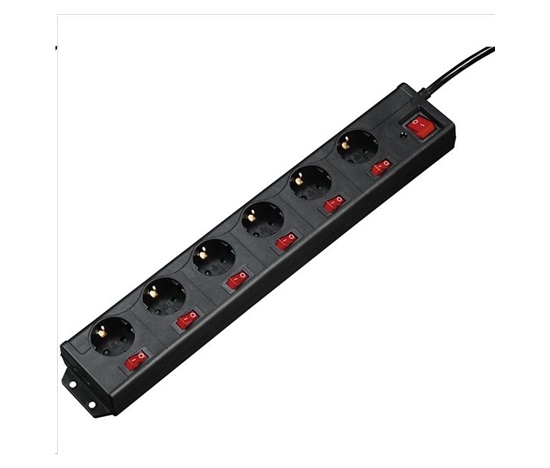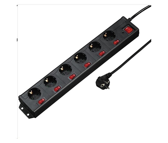 - 6zásuvkový prodlužovací přívod se samostatným vypínačem každé zásuvky