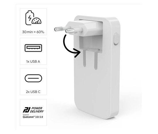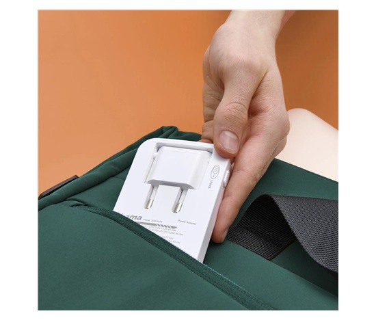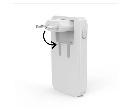 – inovativní konstrukce s velmi plochým tělem a sklopnou euro vidlicí, nabíječka se snadno vejde i do plochých kapes/přihrádek