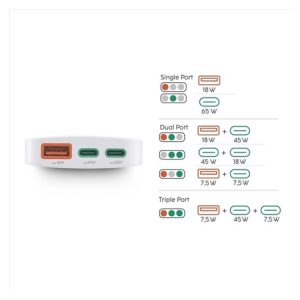 – současný výstup USB C1+C2+A: max. 45+7,5+7,5 W