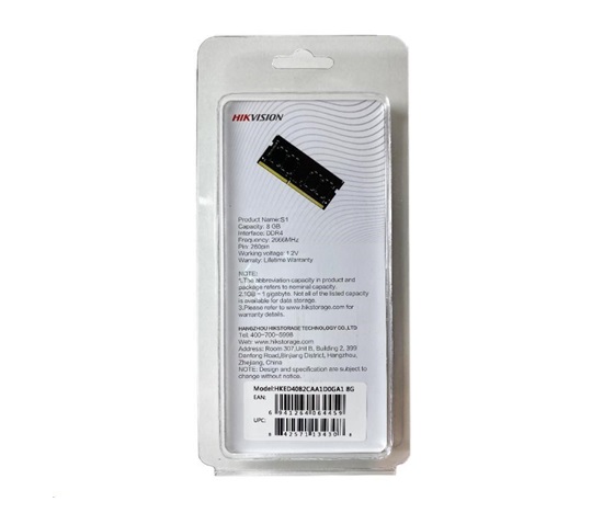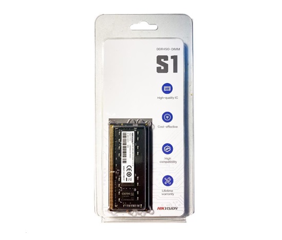 Hikvision memory moudule S1 is a DDR4 memory,which is manufactured by using original high-quality granules and mature production technology to make it more compatible, work stable and cos-etffective. It can be widely used in notebook computer installation.