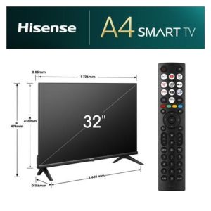 Hisense 32A4N 32″ TV, HD Ready, DLED, WiFi, HDMI, USB, DTS, VIDAA Smart OS