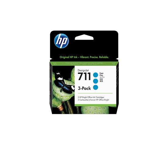 HP 711 Cyan DJ Ink Cart, 29 ml, 3-pack, CZ134A