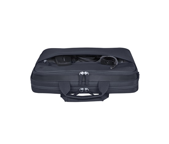 Odolná taška na 16palcový notebook, ve které budete mít počítač i příslušenství celý den chráněné a přehledně uspořádané. Je prostorná a vyrobená z recyklovaných materiálů, takže vás nenechá na holičkách, ať vyrazíte kamkoli.
