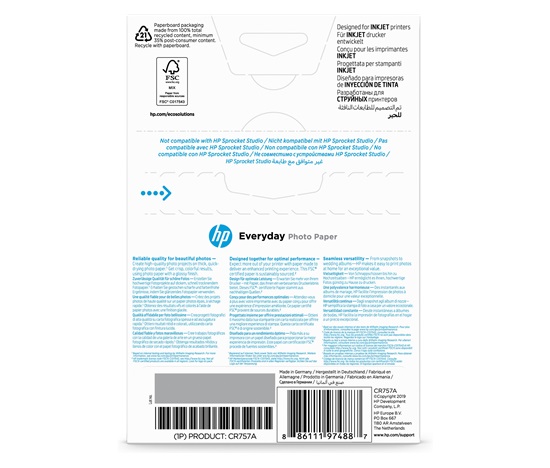 HP Everyday Glossy Photo Paper-100 sht/10 x 15 cm, 200 g/m2, CR757A