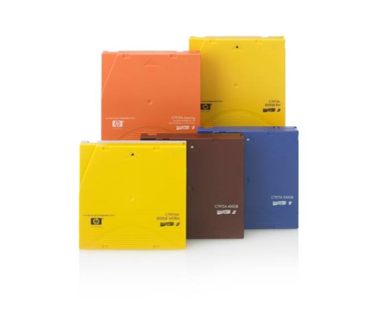 Exhaustively tested, HP LTO Ultrium cartridges meet all your demands for maximum reliability when restoring data, offering high storage density, ease of management and scalable storage and backup performance. Covering six generations of capacity – LTO-1 (200 GB), LTO-2 (400 GB), LTO-3 (800 GB), LTO-4 (1.6 TB), LTO-5 (3 TB), LTO-6 (6.25 TB) – and with transfer speeds of up to 1.4 TB/hr for LTO-6, there is a platform for every need and budget. From LTO-3 onwards, LTO Ultrium WORM cartridges enable the creation of compliant, permanent and tamperproof archives. From LTO-4 onwards, secure AES-256 encryption provides even higher levels of data security and compliance with the most stringent industry regulations to prevent unauthorized data access. From LTO-5 onwards, LTO Ultrium Linear Tape File System makes using tape as easy, flexible, portable and intuitive as using other removable and sharable media, such as a USB drive.